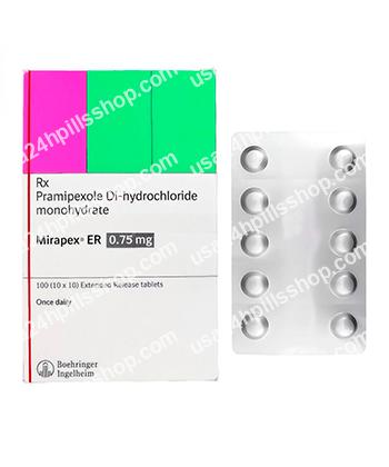 Mirapex contains active substance pramipexole, which is a substance similar to dopamine. By stimulation of dopamine receptors in the striatum and the black substance it affects impulses in neurons of the striatum. Patients with Parkinson's disease usually have low levels to dopamine, so Mirapex is used to treat Parkinson's disease and Restless Legs Syndrome (RLS) as well.