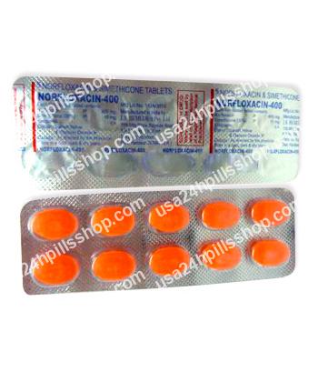 Noroxin is quinolone antibiotic used in treatment of urinary tract such as pyelonephritis, cystitis, urethritis), genitals (prostatitis, cervicitis, endometritis), gastrointestinal tract (salmonellosis, shigellosis), uncomplicated gonorrhea. Mechanism of its action consists in inhibition of DNA gyrase leading to destabilization of the bacterial DNA and death of the susceptible bacteria. Noroxin is active against Staphylococcus spp. (including Staphylococcus aureus), Neisseria spp., E. coli, Citrobacter spp., Klebsiella spp., Proteus spp., Salmonella spp., Enterobacter spp., Hafnia, Shigella spp., Mycobacterium tuberculosis, Vibrio cholerae, Haemophilus influenzae, Chlamydia spp., Mycoplasma spp., And some others. Medication is active for 12 hours.