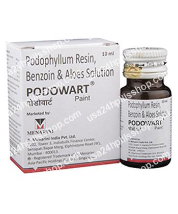 Podowart is a prescription topical medication primarily used to treat skin warts. The main active ingredient is podophyllum resin (20% w/v), which is made from the roots of the American mandrake and has been used to remove warts since at least the 1820s. Podowart also includes benzoin (10% w/v), which is a gum resin from the trunks of trees in the Styrax family, and aloe vera (2% w/v), which is a plant similar to a cactus that grows in hot climates and is generally used to alleviate sunburn.