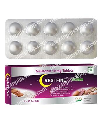 Restfine (Melatonin) is a sleep aid that helps regulate circadian rhythms and improve sleep quality. It is commonly used for insomnia, jet lag, and sleep disorders without causing dependence.