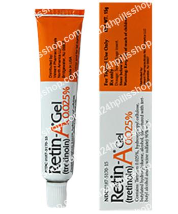 Retin-A Gel is the acid form of vitamin A commonly applied to treat acne vulgaris and keratosis pilaris. There are 0.01% 20 g tube and 0.025% 10 g tube.