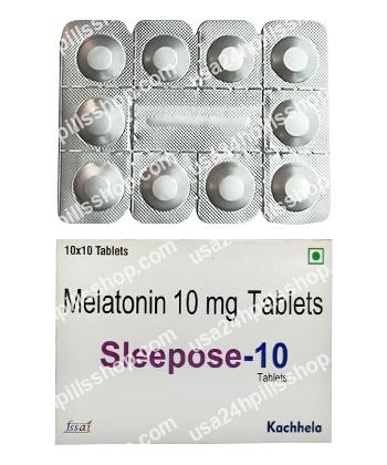 Sleepose (Melatonin) is a sleep aid that regulates the sleep-wake cycle and improves sleep quality. It is non-addictive and commonly used for insomnia and jet lag.